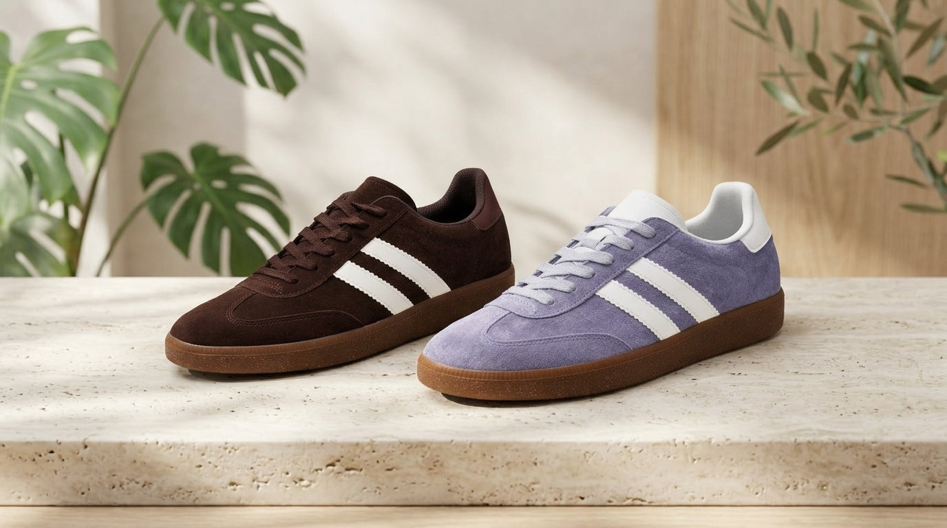 Brązowe sneakersy z zamszu – klasyczne buty lifestyle z gumową podeszwą